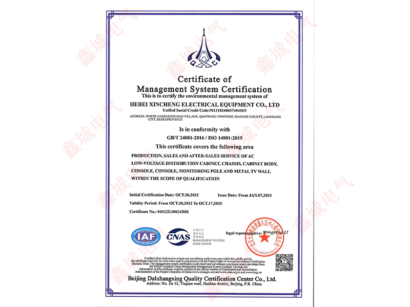 14001環(huán)境管理體系認(rèn)證證書