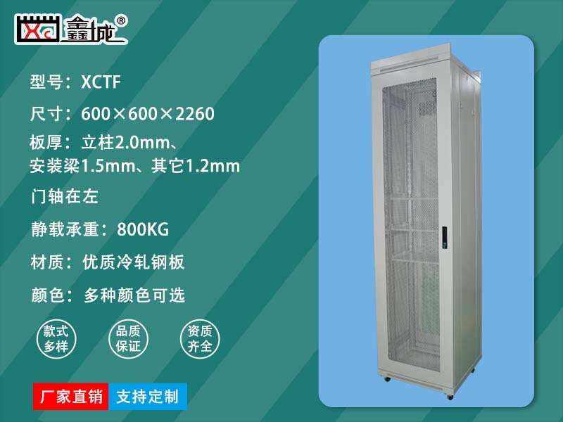 ●前單開網(wǎng)門(可選配玻璃門),后門雙開網(wǎng)孔門,(可選裝左門軸或右門軸),此款底部帶輪子,框架為優(yōu)質(zhì)冷軋鋼板材質(zhì),設計新穎,高貴典雅,極富時代氣息,為您的工程增添價值;